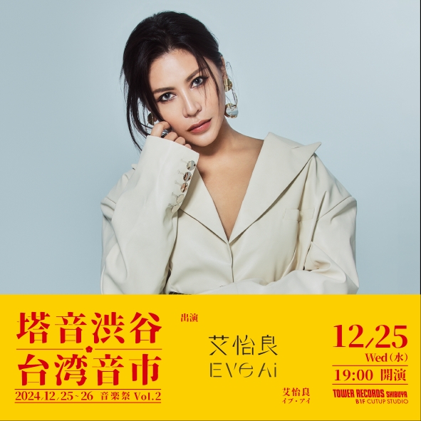 2024年12月25日(星期三)和26日(星期四)兩天,代表台灣的歌手藝人們將在東京TOWER RECORDS 渋谷店B1的CUTUP STUDIO舉辦的「塔音渋谷『台湾音市』音樂祭 Vol.2」中登台演出。「塔音渋谷『台湾音市』音樂祭 Vol.2」將有四組代表台灣流行音樂的歌手藝人參加。在這個特別的活動中,邀請你一起來和台灣才華洋溢的音樂人們共渡美妙的音樂世界!