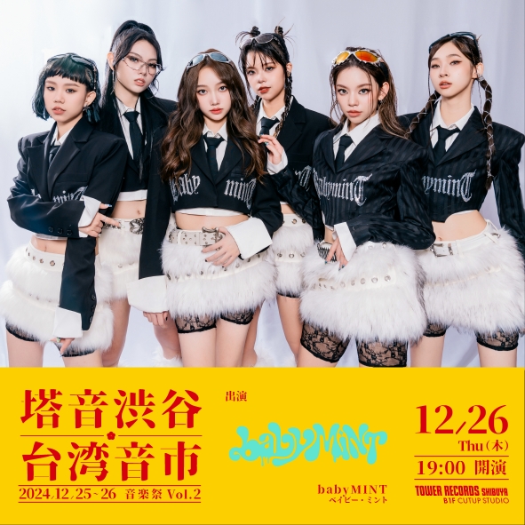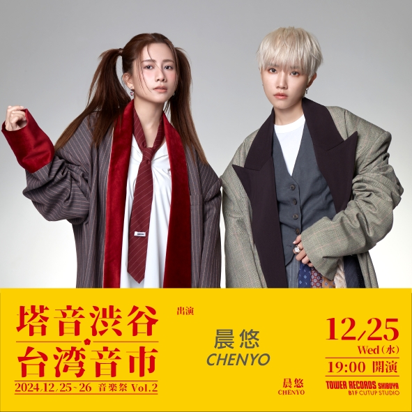 2024年12月25日(星期三)和26日(星期四)兩天,代表台灣的歌手藝人們將在東京TOWER RECORDS 渋谷店B1的CUTUP STUDIO舉辦的「塔音渋谷『台湾音市』音樂祭 Vol.2」中登台演出。「塔音渋谷『台湾音市』音樂祭 Vol.2」將有四組代表台灣流行音樂的歌手藝人參加。在這個特別的活動中,邀請你一起來和台灣才華洋溢的音樂人們共渡美妙的音樂世界!